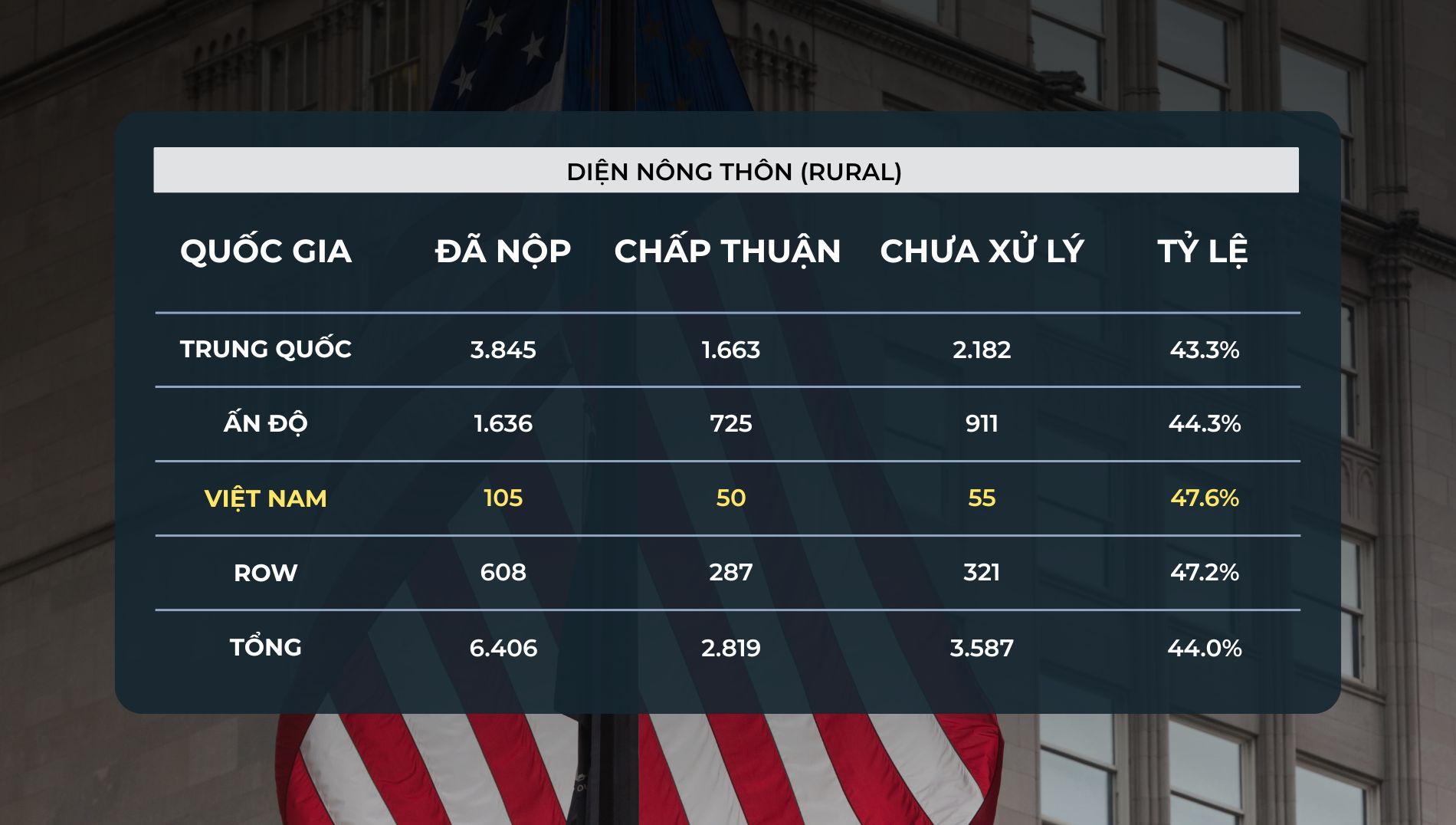 Tổng số hồ sơ đã được USCIS chấp thuận: 3.442 hồ sơ, khoảng 25% tổng số hồ sơ đã nộp.